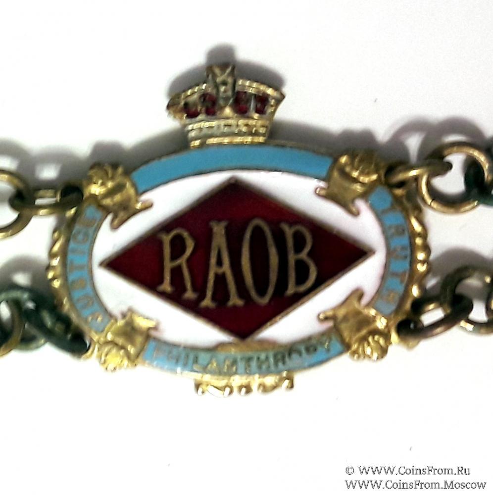 Медальон с аббревиатурой РАОБ и девизом Ордена овальной формы по голубой эмали девиз Ордена, на красном ромбе на фоне из белой эмали аббревиатура ордена RAOB сверху медальон увенчан короной красной эмали - 6 шт.