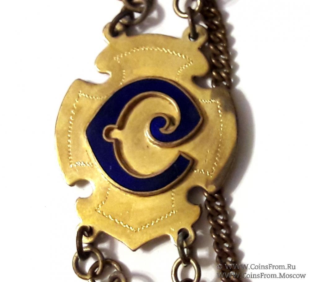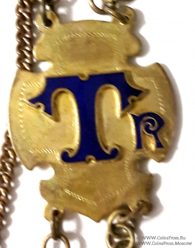 На данной ленте 2 медальона с буквами С и Тr показывают, что носитель ленты имел должность Городского Казначея (City Treasurer), то есть казначея Ложи.