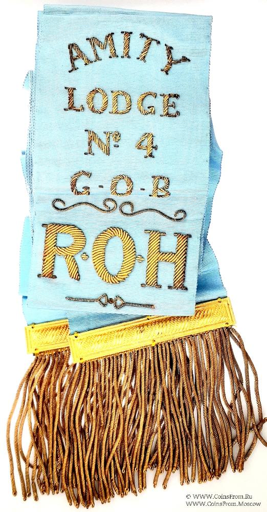 Вышивка с наименованием и номером Ложи: Amity Lodge № 4 G.O.B. R.O.H. (ROLL OF HONOR) – «Свиток Чести».