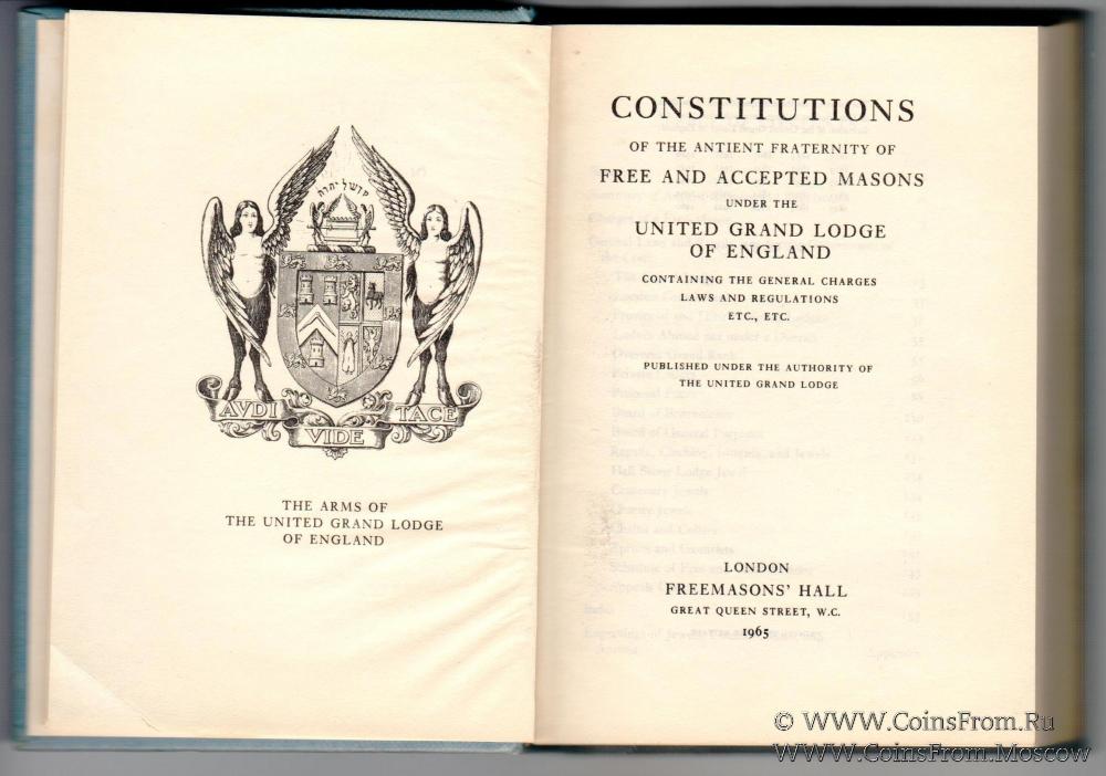 Конституция свободного и принятого Масонства выпущенная Объединённой Великой Ложей Ангии. Утверждён герб ОВЛА, Правила и законы "Цехового" Масонства, работа Великих и Провинциальных, в том числе заграничных Лож. регламентирована одежда, знаки. утверждены знаки за благотворительность, сто-летнего юбилея. Определено расписание взносов и сборов, а также другие организационные вопросы.