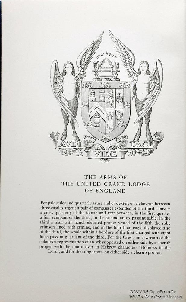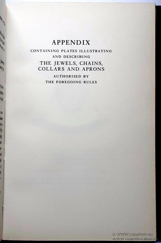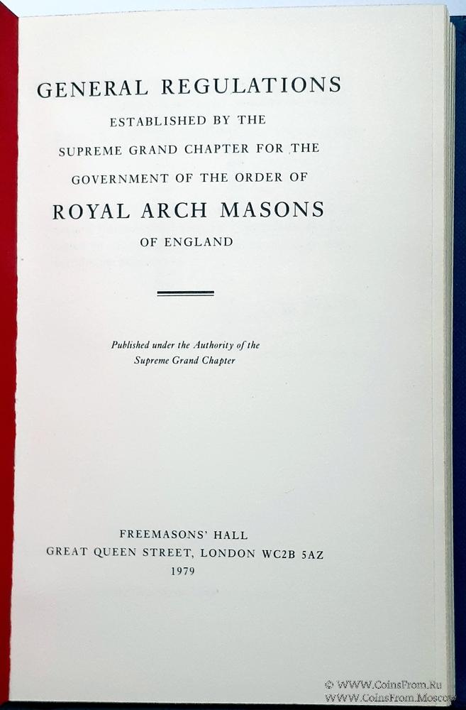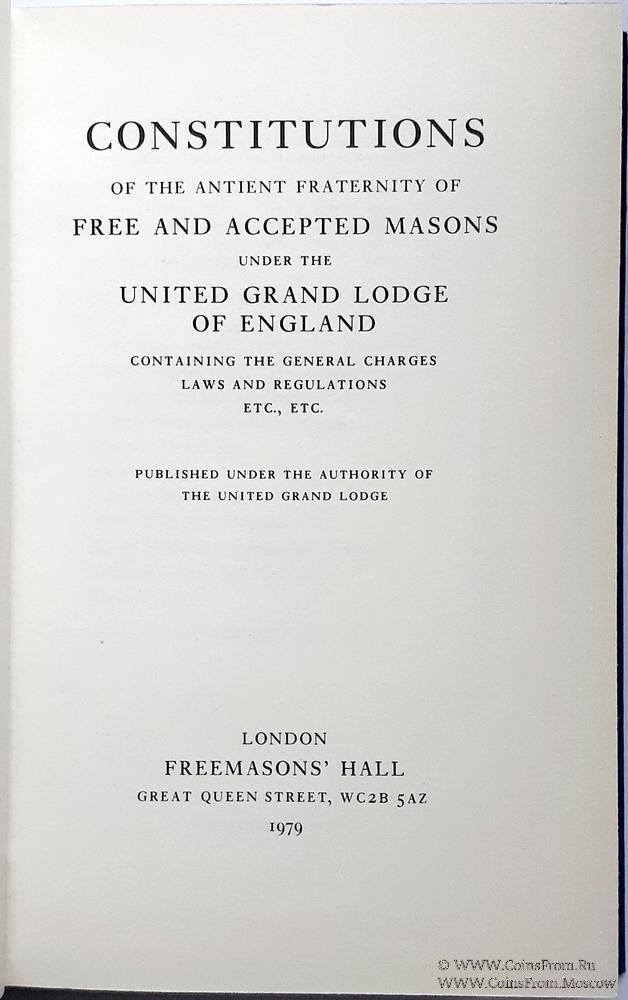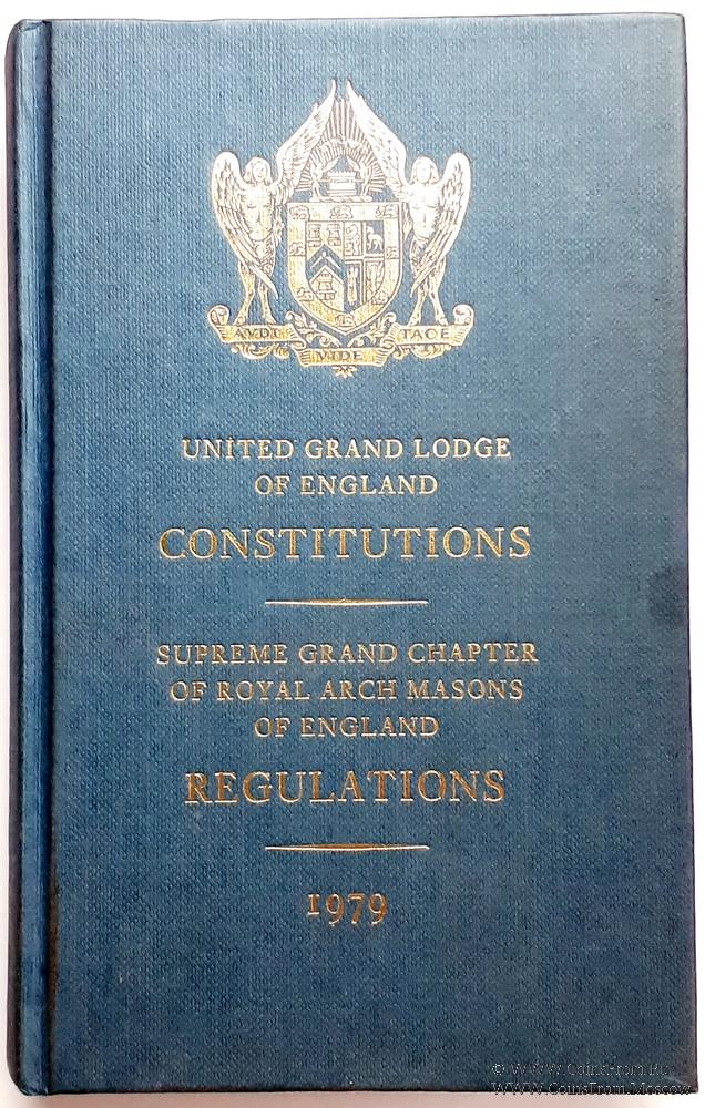 Конституция 1979 г., выпущенная Объединённой Великой Ложей Англии. Утверждён герб ОВЛА, Правила и законы "Цехового" Масонства, работа Великих и Провинциальных, в том числе заграничных Лож. регламентирована одежда, знаки должностных лиц Лож, утверждены знаки за благотворительность, столетнего юбилея. Определено расписание взносов и сборов, а также другие организационные вопросы. Во второй части описаны правила Верховного Великого Капитула королевской Арки Масонов Англии Правила. 1979 г. Рассмотрены организационные вопросы для капитулов Королевской Арки, регламентирована церемониальная одежда, утверждены знаки должностных лиц Капитулов.