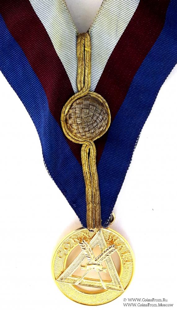 Лента: Материал - муар Длина – 500 мм Ширина – 50 мм Знак: Действующий Великий Писец (секретарь) Провинции Бомбей Страна: Англия. Материал: бронза, позолота. Клейма: TOYE&Co LONDON. Выпуск: Лондон. Год выпуска: 1961. Форма: подвеска.