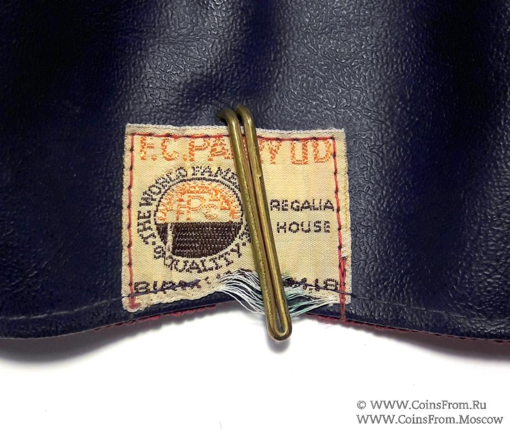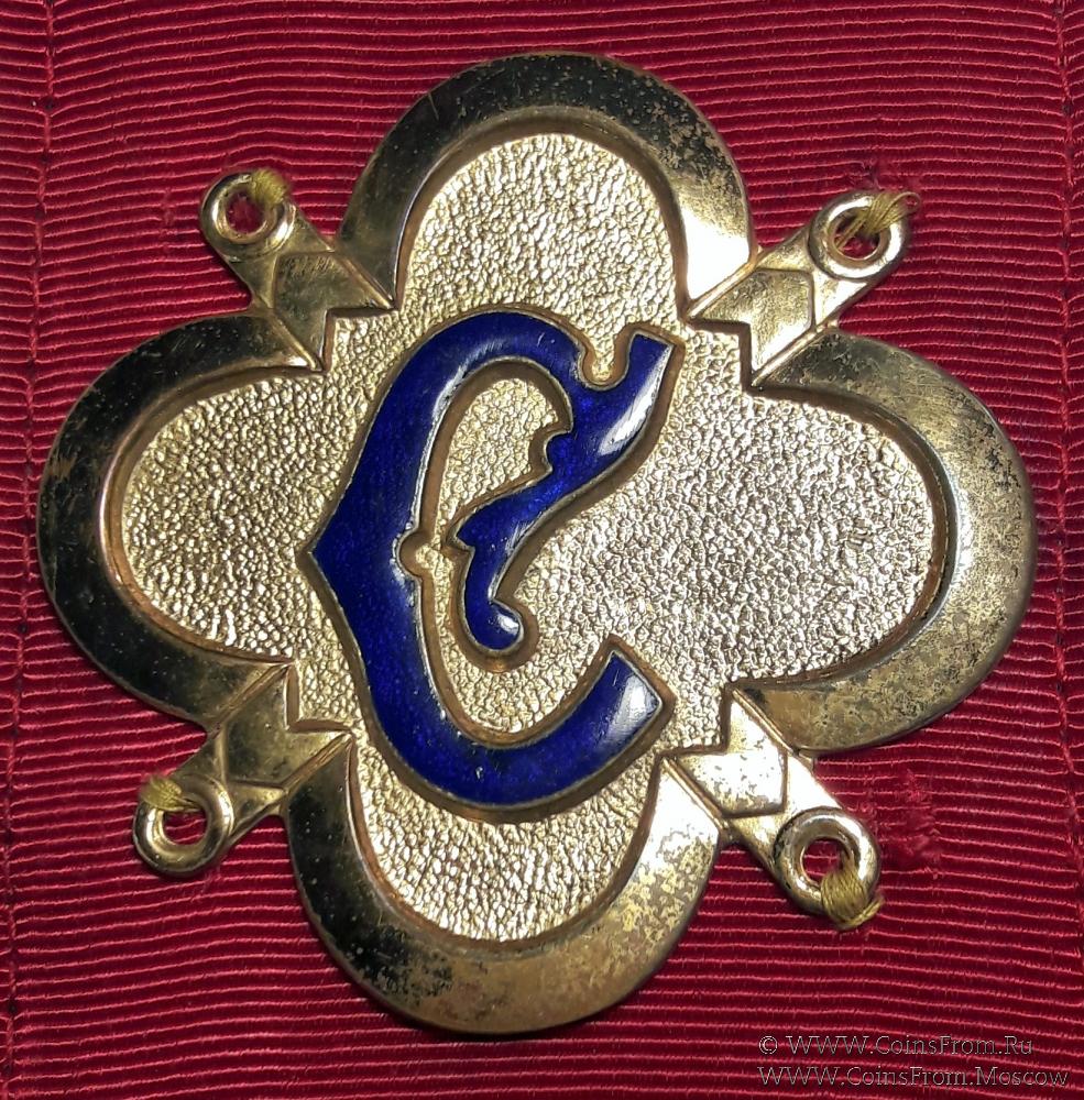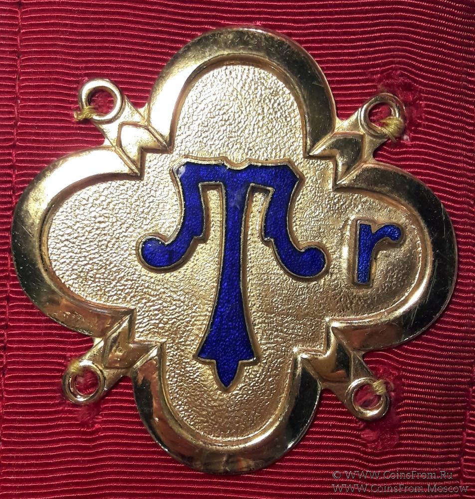 На данной ленте 2 медальона с буквами С и Тr показывают, что носитель ленты имел должность Городского Казначея (City Treasurer), то есть казначея Ложи.