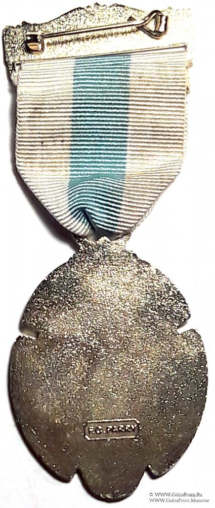 Лента знака белая с голубой полосой в центре. Колодка синей эмали с надписью STEWARD и булавкой для ношения с обратной стороны.