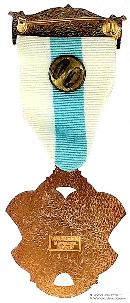 КОЛОДКИ/МЕДАЛЬОН: верхняя колодка голубой эмали с надписью STEWARD. Сверху колодка украшена орнаментом. На ленте медальон с изображением наугольника, над которым символическое изображение чертежа к 47 теореме из первой книги Евклида (теорема Пифагора).