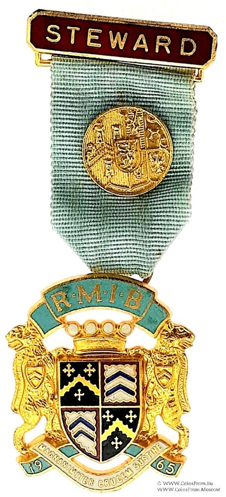 КОЛОДКИ/МЕДАЛЬОН: верхняя колодка красной эмали с надписью Steward. В центре ленты круглый медальон с символикой.