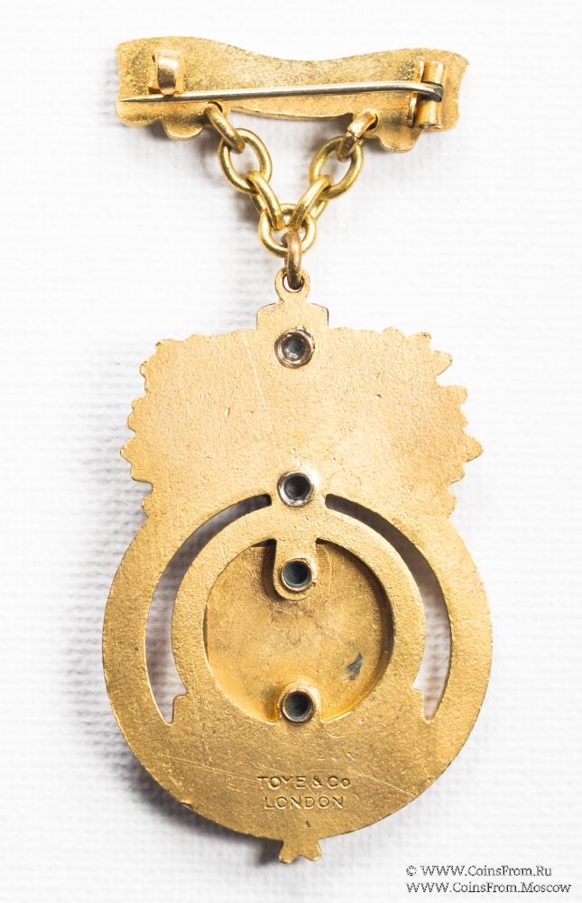 Круг красной эмали с надписью RMIG 1954. В круге средний герб в виде щита, шлема, навершия и намёта. Щит разделённый четверочастно имеет две белые четверти и две голубые с символами. Под щитом лента с девизом на латыни PERSEVERANCE AND COURAGE – упорство и мужество. В центре девизной ленты подвеска в виде мальтийского креста. Над щитом рыцарский шлем с забралом. Серебряный шлем с поднятым забралом, повёрнутый прямо - для баронетов и рыцарей. Выше на чёрно-белом бурлете клейнод (навершие) в виде башни крепостной стены, к которой крепится кольцо. Вокруг башни намёт в виде стилизованных листьев дуба и по флагу с каждой стороны. Один из флагов имеет в центре Алую розу Ланкастеров — геральдический символ Ланкашира и Ланкастеров.