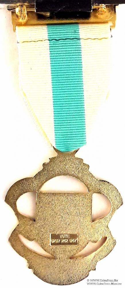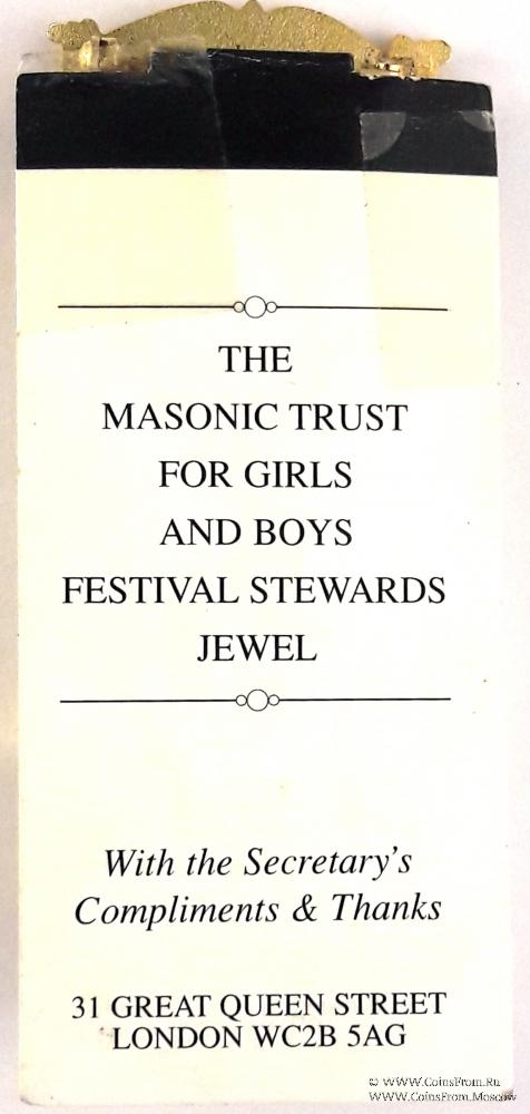 Знак на двухцветной бело-голубой ленте, что говорит о двух типах благотворительных учреждений: для мальчиков и для девочек. Верхняя колодка в виде прямоугольника синей эмали с надписью STEWARD, орнаментом сверху и булавкой для ношения с обратной стороны. В центре ленты медальон прямоугольной формы синей эмали с надпись. Vice Patron. Низ ленты непосредственно, без металлической колодки, соединена с прорезью в знаке.