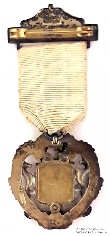 Лента знака белая. Верхняя колодка в форме пластины синей эмали с надписью STEWARD и красной короной сверху.