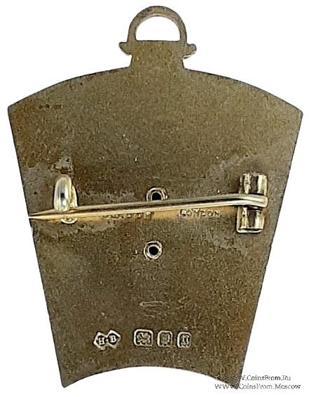 ЗНАК: серебро, позолота, эмаль. АВЕРС: в форме замкового камня, на котором на фоне вязи из букв MBF размещён малый герб в виде щита. В нижней части на ленте дата 1936. РЕВЕРС: клейма: Н.В. лев, голова леопарда, u (1935).