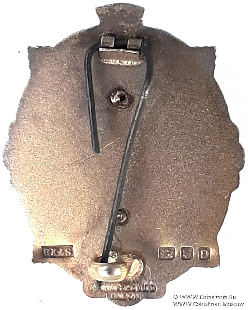 РЕВЕРС: с вертикальной булавкой для ношения. Клейма: GK&S. Kenning & Son. Ltd, London, лев, голова леопарда, D. Год выпуска 1939.
