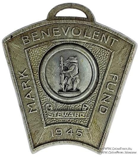 АВЕРС: в форме замкового камня, на котором в центре, в двойном круге изображение символа графства Уорикшир (Warwickshire). Ниже изображения надпись Steward. По периметру замкового камня наименование благотворительного фонда и дата 1945.