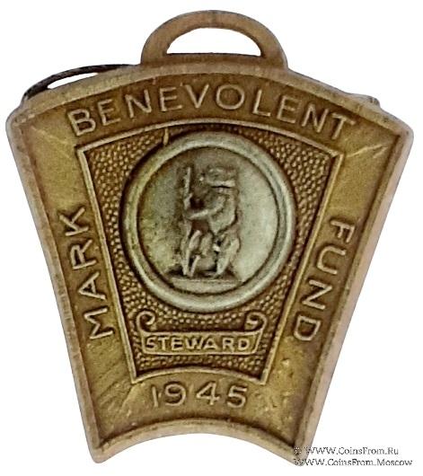 АВЕРС: в форме замкового камня, на котором в центре, в двойном круге изображение символа графства Уорикшир (Warwickshire). Ниже изображения надпись Steward. По периметру замкового камня наименование благотворительного фонда и дата 1945.