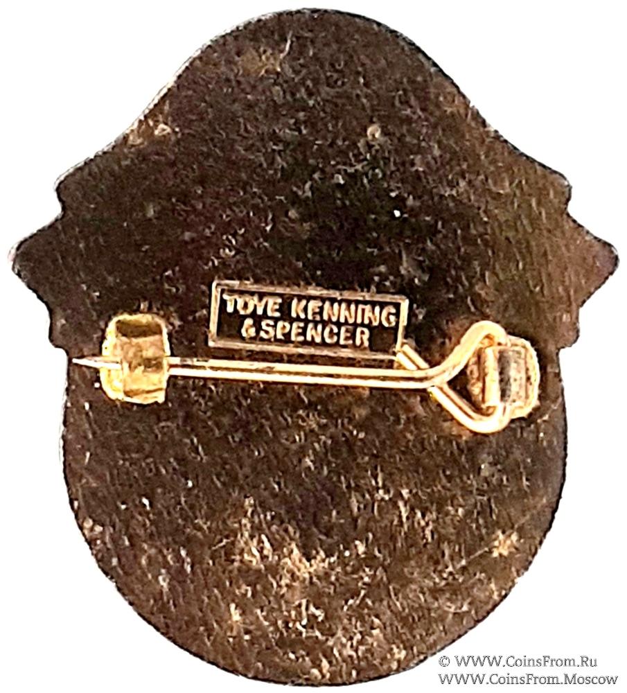 РЕВЕРС: горизонтальная булавка для ношения. Без гравировок. Клеймо производителя – Toye Kenning & Spencer. Год выпуска: 1983. Бирмингем.