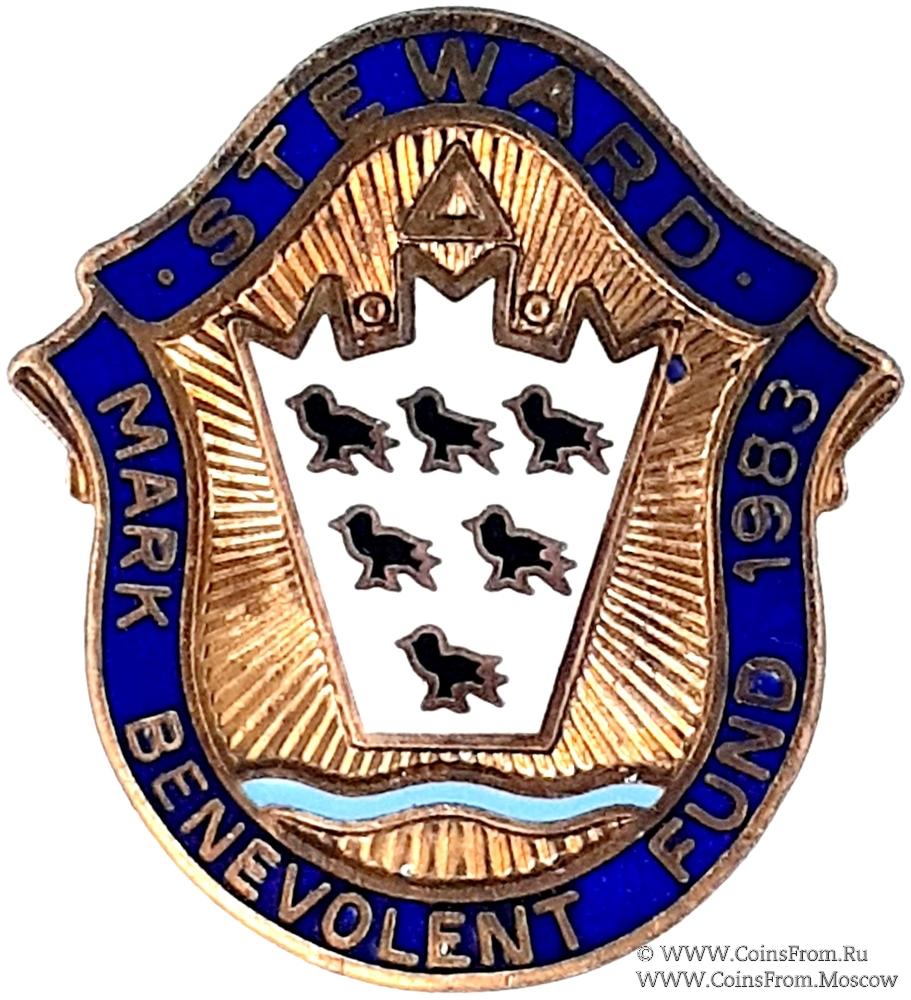 АВЕРС: в форме щита с наименованием фонда, надписью Steward и датой 1983. В центре на лучистом фоне малый герб в виде замкового камня со стеновыми башнями сверху и шестью птицами – символ графства Sussex.