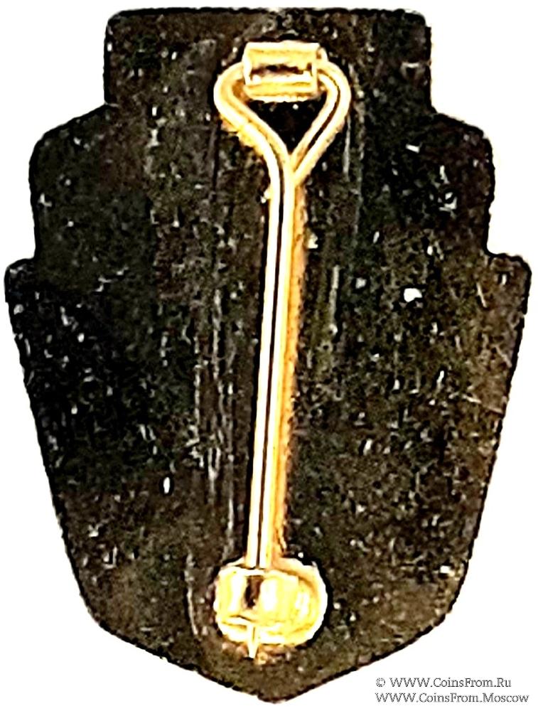 РЕВЕРС: глянцевый с вертикальной булавкой для ношения. Без гравировок и клейм.