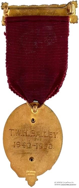 АВЕРС: двойной овал из подвязки синей эмали с наименованием благотворительного заведения Commercial Travellers Benevolent Institution. В центре накладной щит с аббревиатурой заведения (CTBI).