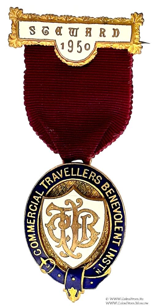 АВЕРС: двойной овал синей эмали, образованные подвязкой в виде ремня синего цвета с наименованием благотворительного заведения (Commercial Travellers Benevolent Inst.). В центре малый герб, в виде щита с вязью из букв наименования благотворительного заведения CTBI.