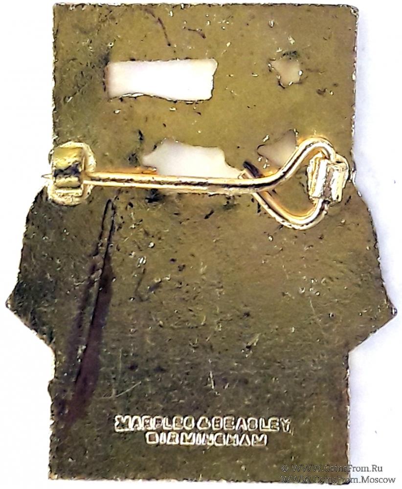 РЕВЕРС: горизонтальная булавка для ношения. Без гравировок. Клеймо производителя – Marples & Beasley Birmingham. Год выпуска: 1965. Бирмингем.