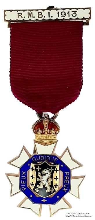 КОЛОДКИ/МЕДАЛЬОН: прямоугольная, белой эмали с надписью: R.M.B.I. 1913.