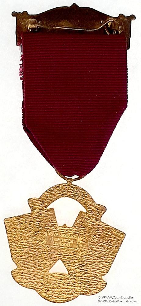 АВЕРС: в центре знака два герба в виде щитов соединены лентой с датой 1985. Ниже щитов наименование благотворительного заведения Royal Masonic Benevolent Institution. Слева - щит с герба Великой Ложи Англии.