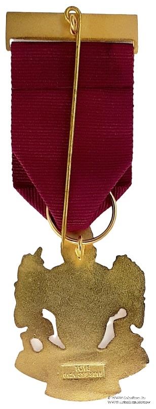 КОЛОДКИ/МЕДАЛЬОН: колодка знака прямоугольная синей эмали без надписей. В центре ленты медальон в виде букета из 3 цветов и дубовых веток с желудями – эмблема RMBI.