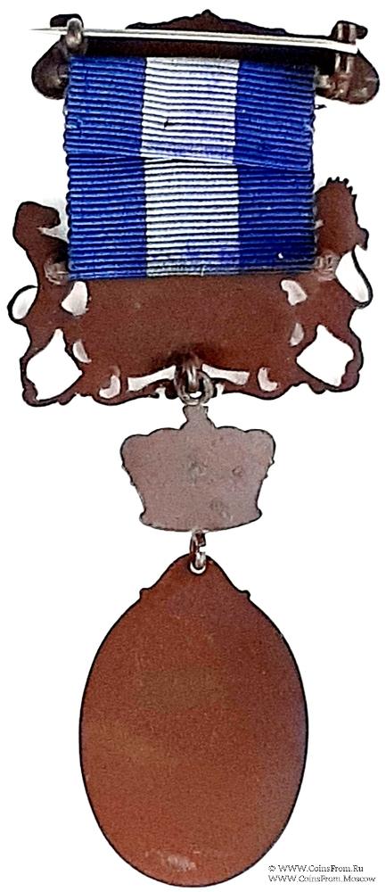 КОЛОДКИ/МЕДАЛЬОН: верхняя колодка в форме вытянутого овала на фоне орнамента с наименованием провинции Province of N & E Yorks (Северный и Восточный Йоркшир – административные части графства Йоркшир на севере Англии).