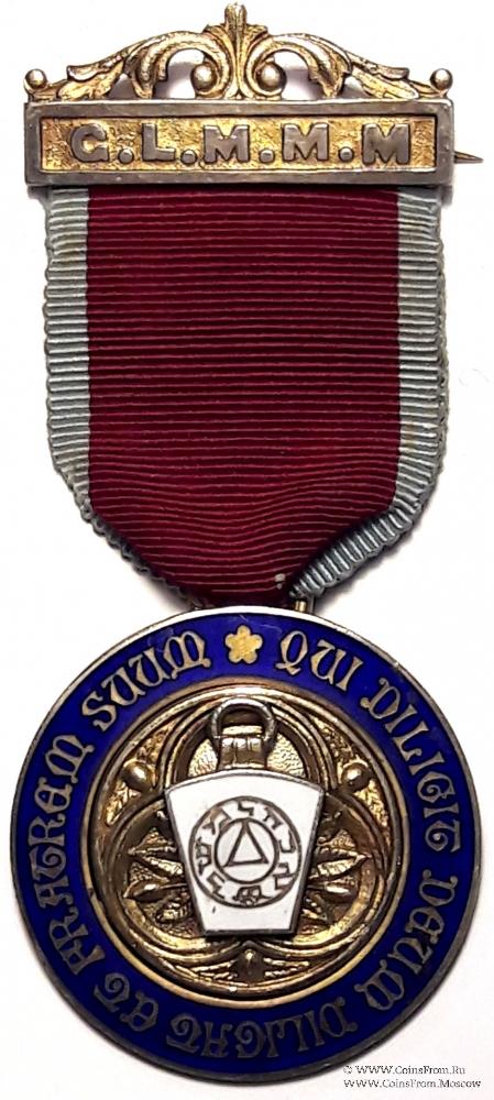 Надпись на реверсе: Presented to Bro. Herbert White G.L.M.M.M. STEWARD. 1928. Вручён Великой ложей Степеней Мастеров Метки Брату Herbert White за благотворительность в 1928 г.