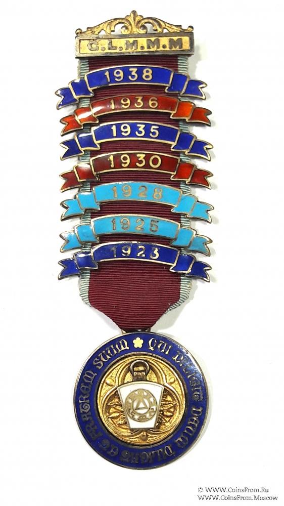 Надпись на реверсе: Presented to Bro. Rev. St. J. Morse G.L.M.M.M. Вручено Великой ложей Масонов Мастеров Метки. В центре надпись STEWARD 1920 - Преподнесён Брату Rev. St. J. Morse Великой ложей Масонов Мастеров Метки в 1920 г за благотворительность.