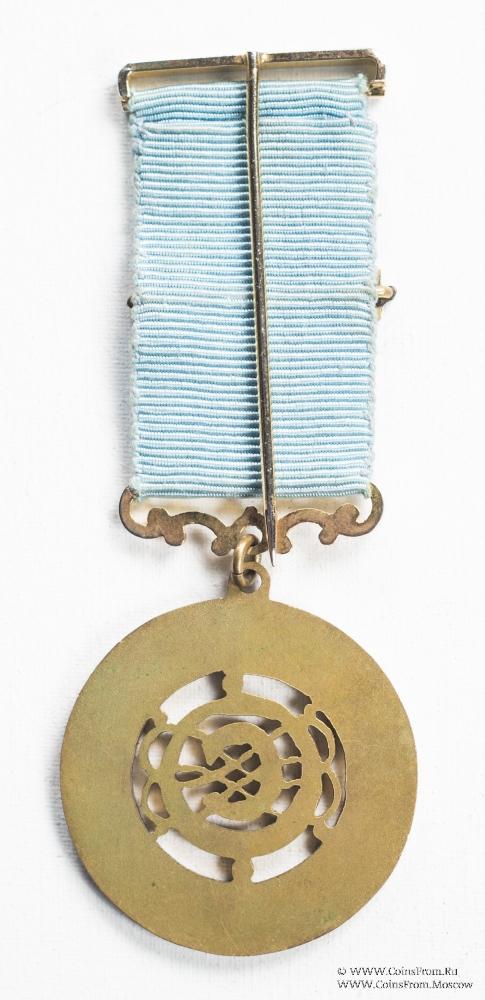 Лента знака голубая. По центру ленты медальон жёлтого цвета с лентой голубой эмали и надписью номера Ложи. Верхняя колодка металлическая с булавкой для носки. Нижняя - витая с кольцом для знака.