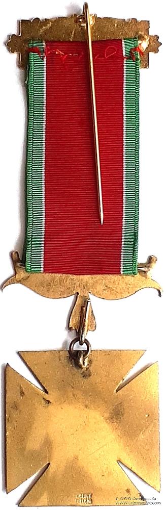 КОЛОДКИ/МЕДАЛЬОН: верхняя колодка в виде прямоугольника, окружённого орнаментом. Нижняя колодка в виде ленты с аббревиатурой Ордена RAOB, ниже которой стилизованные рога буйвола. Низ колодки заканчивается трилистником.