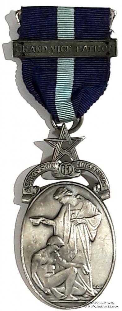 Лента: без особенностей. На ленте медальон прямоугольной формы с надписью GRAND VICE PATRON. Фон медальона рифлёный (точки).