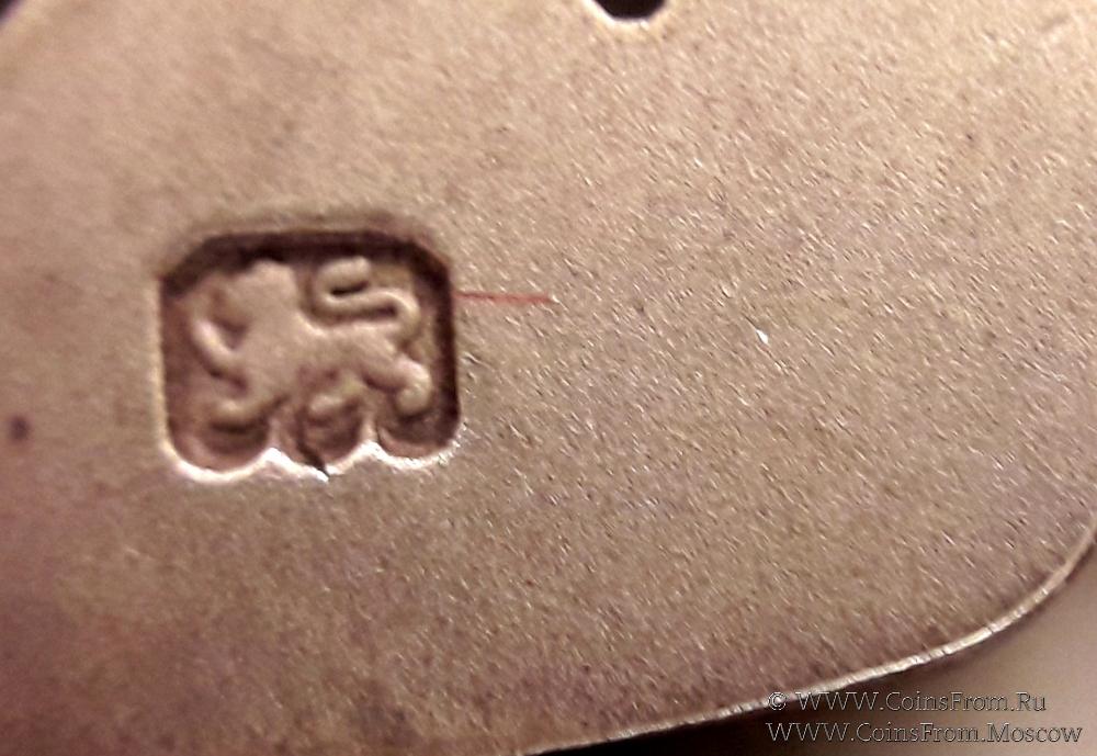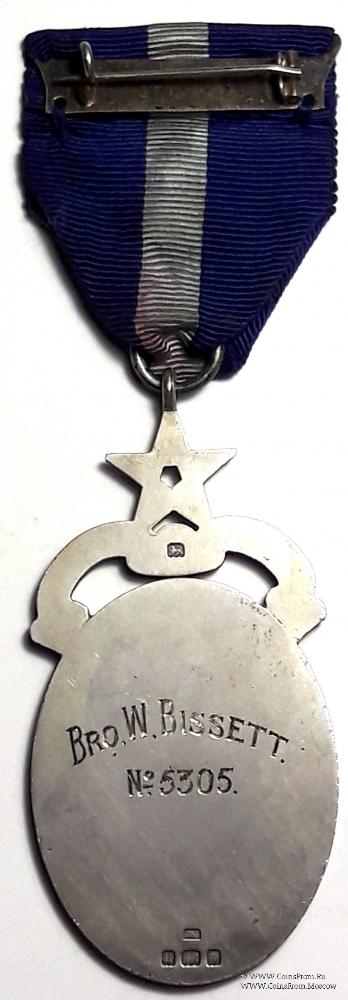 Знак на синей ленте с голубой полосой по центру. Верхняя колодка, скрытая с булавкой для носки. В низу лента непосредственно крепится за кольцо знака. На аверсе справа в низу буквы C.L.D. Гравировка на реверсе: BRO.W.BISSETT. № 5305.