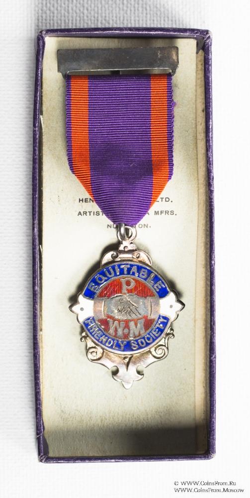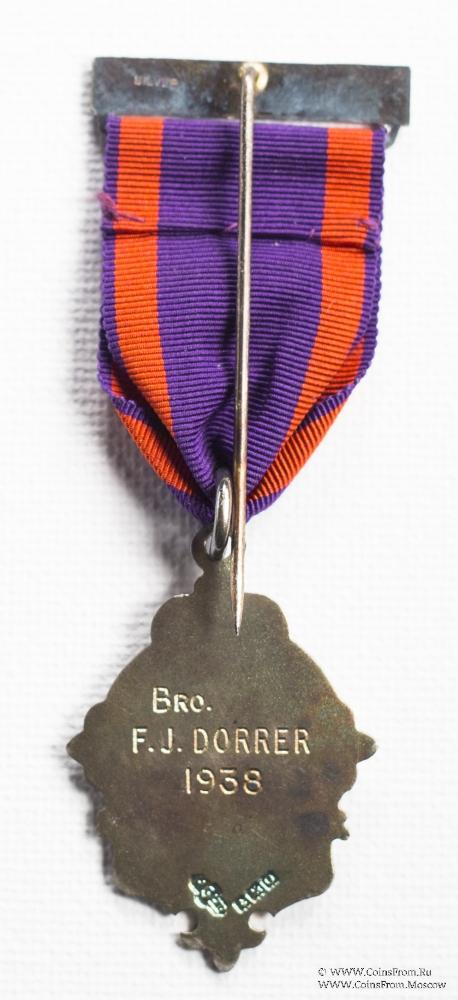 Знак круглой формы на стилизованной подставке. В кругу синей эмали надпись с названием Ордена EQUITABLE FRIENDLY SOCIETY - РАВНОПРАВНОЕ ДРУЖЕСКОЕ ОБЩЕСТВО. В центре на красном фоне рукопожатие с трилистниками по бокам. Буквы P.W.M. (Р.W.M. –Прошлому Досточтимому Мастеру). Гравировка на реверсе знака BRO. F.J.DORRER 1938.