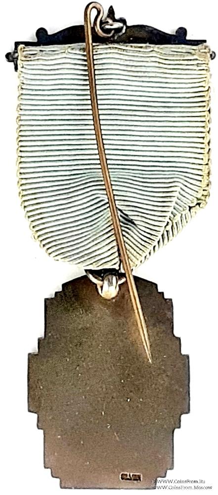 КОЛОДКИ/МЕДАЛЬОН: верхняя колодка прямоугольная, украшенная сверху орнаментом, с надписью по синей эмали FOUNDER (Основатель).