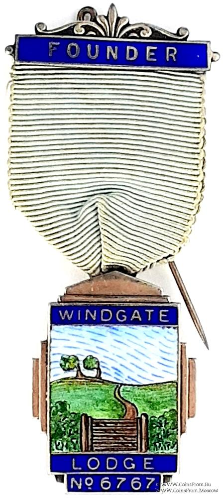 АВЕРС: прямоугольной формы с символической крышей в верхней части. На всей площади рисунок по эмали. Снизу и сверху по синей эмали наименование и номер Ложи (Windgate Lodge № 6767).