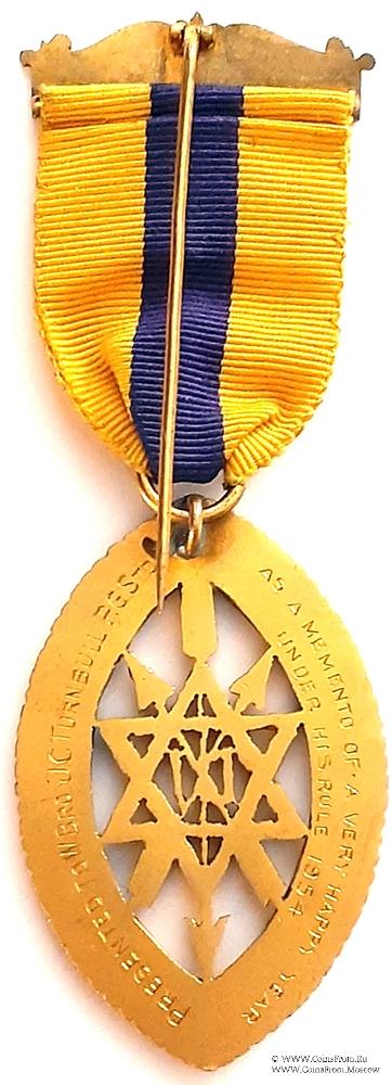 Реверс: Клейма: нет. Гравировка: Presented to W.Bro. U.C. Turnbull P.G. Sto as a Memento of a Very Happy Year under His Rule 1954 – Вручён Уважаемому Брату U.C. Turnbull в знак памяти об очень счастливом его правлении в 1954 году. Выпуск: 1954 г.