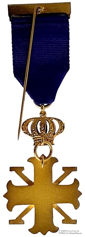 Знак в форме креста красной эмали. Концы в виде трилиcтника на лучах креста буквы IHSV (IHSV – IN HOS SIGNO VINCES (латынь) - «Сим (знаком) победеши»). Сверху креста накладтая буква Р и Х. Крест к лентте крепится через двухсторонюю корону.