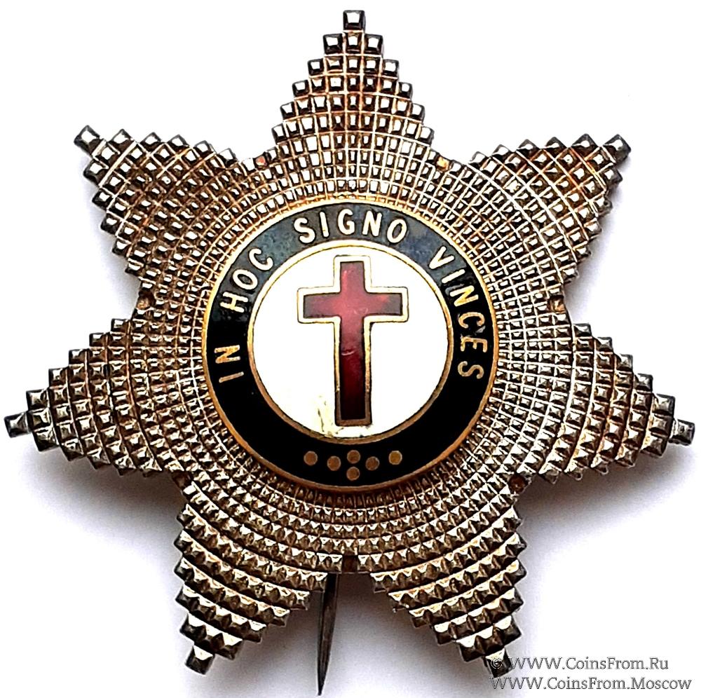 Знак: основной металл, эмаль. Звезда Прошлый Помощник Наставника. Аверс: 7 конечная звезда. В центре на двух заклёпках накладной круг чёрного цвета с надписью IN HOC SIGNO VINCES (латынь) - СИМ ПОБЕДИШИ. В центре круга «Латинский» крест (с одной перекладиной) красной эмали. Высота 6 см. Реверс: Клейма: нет.