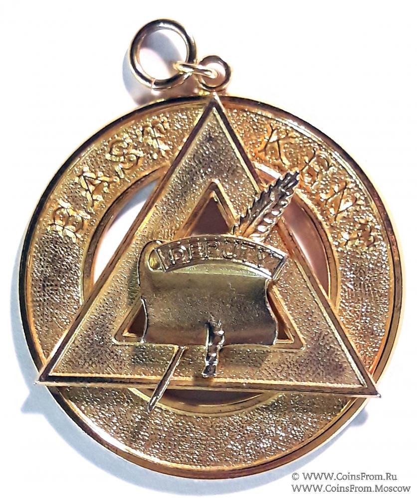 Знак трёхслойный, все элементы накладные. Знак круглой формы в золотом круге наименование провинции BASTKENT. На круге накладной треугольник, на котором размещён накладной свиток с печатью и пером – символ Великого Историка. Равносторонний треугольник – Масонский символ Божества. У офицеров Провинциальных Великих Лож эмблема на знаке должна быть заключена в круг с выгравированным наименованием провинции или района.