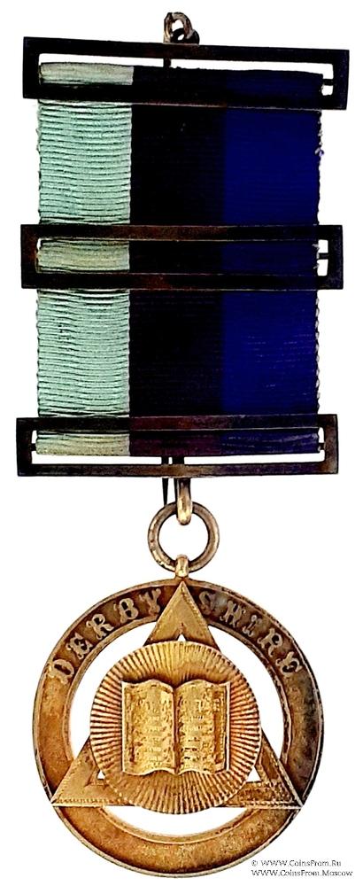 АВЕРС: в форме двойного круга с наименованием провинции Derbyshire. На круге накладной треугольник, на котором Книга на фоне лучистого ореола - символ GRAND CHAPLAIN – Великого Капеллана.