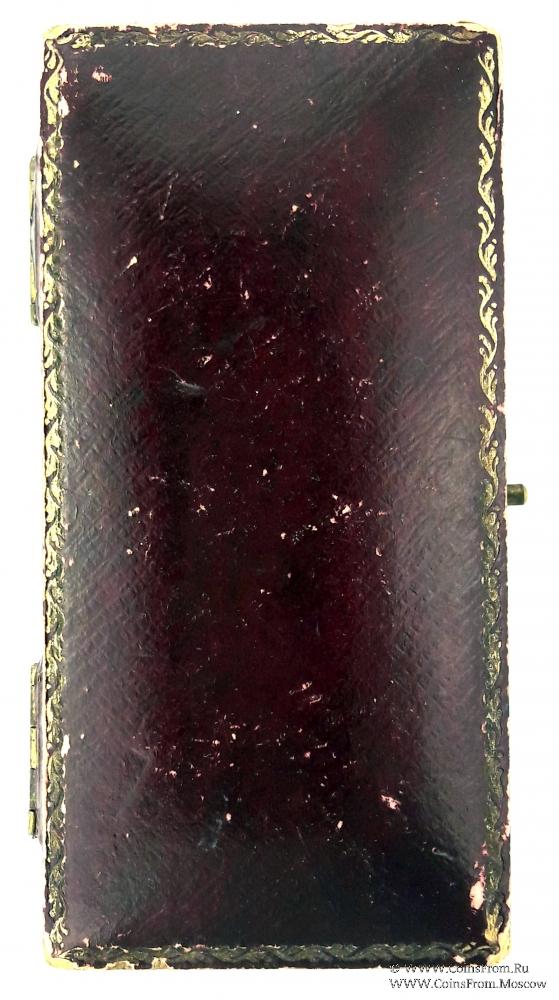 Лента белая стандартная (25 мм). Знак D= 25 мм на белой ленте вручался каждому Компаньону (Брату) Капитула. В центре ленты скрепка в виде прямоугольника с орнаментом. Верхняя и нижняя колодка металлическая трапециевидной формы с орнаментом. Знак, колодки и медальон выполнены из золота. Пробы на всех элементах.