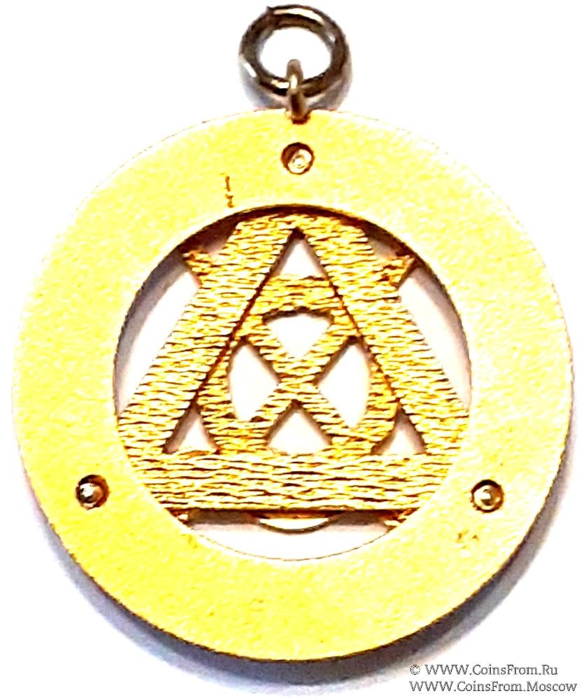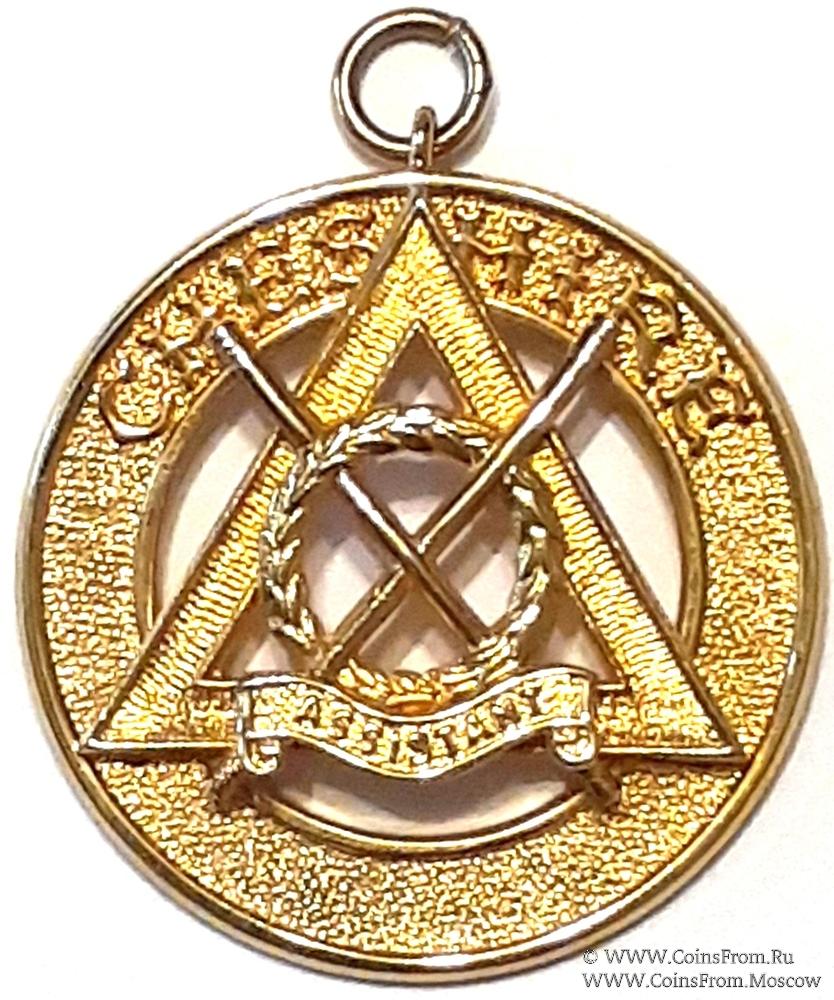 АВЕРС: круглой формы. Диаметр 46 мм. В двойном круге наименование Провинции (Cheshire). В центре накладной равносторонний треугольник с накладным изображением венка, пресекающихся жезлов и ленты с надписью Assistant – помощник. Символ Церемониймейстера.