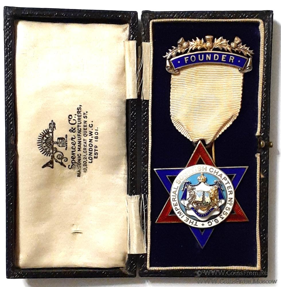 Страна: Шотландия. Материал: серебро, позолота, эмаль. Клейма:RS, Spencer, London, якорь, лев, У. 1923. В центре – лев, У. 1923.На колодке – Spencer, London, лев, У. Выпуск: Лондон. Апробирован Бирмингем. Год выпуска: 1923. Форма: медаль.