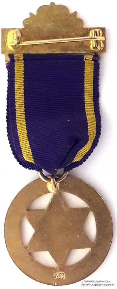 Знак круглой формы. По кругу название Ордена MANCHESTER UNITY ODDFELLOWS – манчестерский союз Ордена Тайного братства и аббревиатура A.M.C. - (ANNUAL MOVEABLE CONFERENCE) – ежегодная переходная (подвижная) конференция. В круг вставлена гексаграмма белой эмали с тремя звеньями цепи – символ Ордена и девизом AMICITIA AMOR ET VERITAS– правда, любовь, дружба.