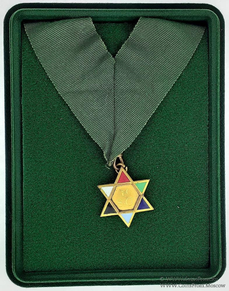 Аверс: в виде гексаграммы с разноцветными углами. В центре в пятиугольнике гравировка из трёх букв F (P) s a