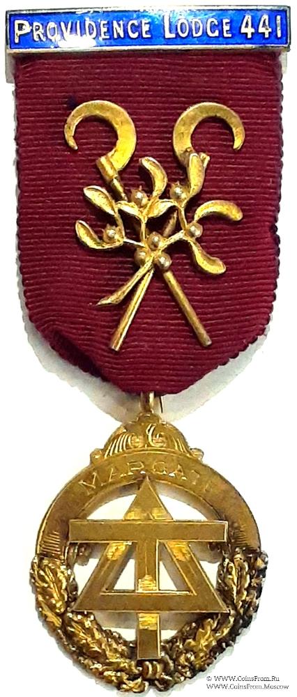 РЕВЕРС: гравировка: Presented to Bro. W.J. Wassel. P.A. (Р.А. - Past Arch – прошедший Арку) for Services as N.A.D. (Noble Arch Druid (Благородный Друид Арки)). Oct. Dec. 1949. Клейма: LSL, лев, голова, М, 1947 г.