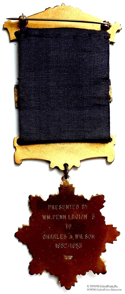 РЕВЕРС: гравировка: Presented by W.M. Penn Legion # 3 to Charles A. Wilson 1952-1953. Представлен Досточтимым Мастером Penn Легион № 3 Charles A. Wilson 1952-1953 гг.