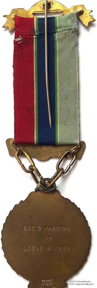 Аверс: круглой формы ограниченный по краю венком. Верх знака увенчан короной, в нижней части надпись GLE. Внутри венка на ленте синей эмали надпись на латыни: COR UNUM-VIA UNA-SIC ITUR AD ASTRA-ANIMO ET FIDE. В центре знака щит, разделённый на 4 части с выделенным центром круглой формы в виде монеты пол пенни (HALF PENNY). Под монетой надпись ON THIS WE BUILT - на этом мы построили. Надпись в нижней части щита: реабилитационный дом, благотворительный фонд и военная пенсия в Aldridge Grove. Aldridge Grove город в центре южной части Соединенных Штатов Америки (Lawrence County, Alabama), 191 километр на север от города Alabama. Над щитом всевидящее око.
