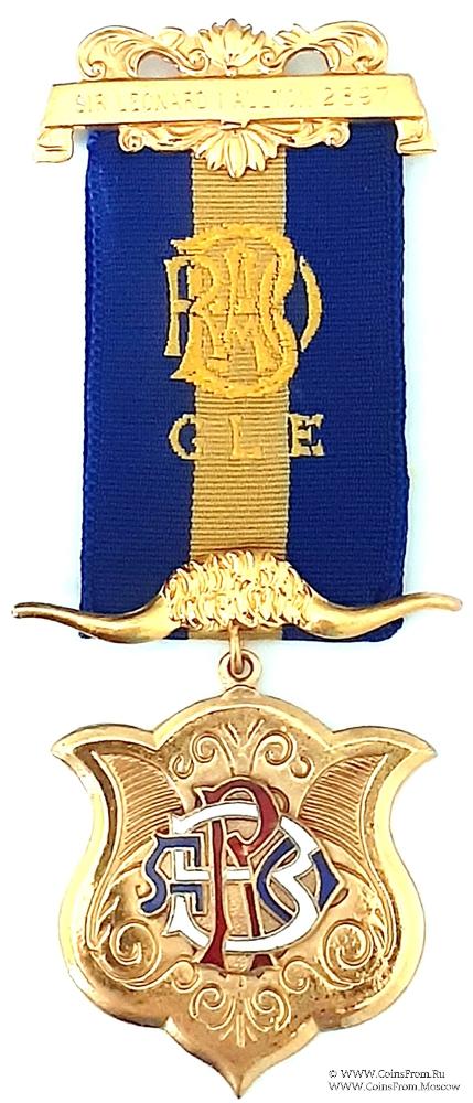 Колодки/медальон: верхняя колодка в виде прямоугольника на фоне стилизованного ор-намента с наименованием и номером Ложи Sir Leonard I Aulton 2897. и иглой для носки с обратной стороны. Нижняя колодка в виде рогов буйвола.